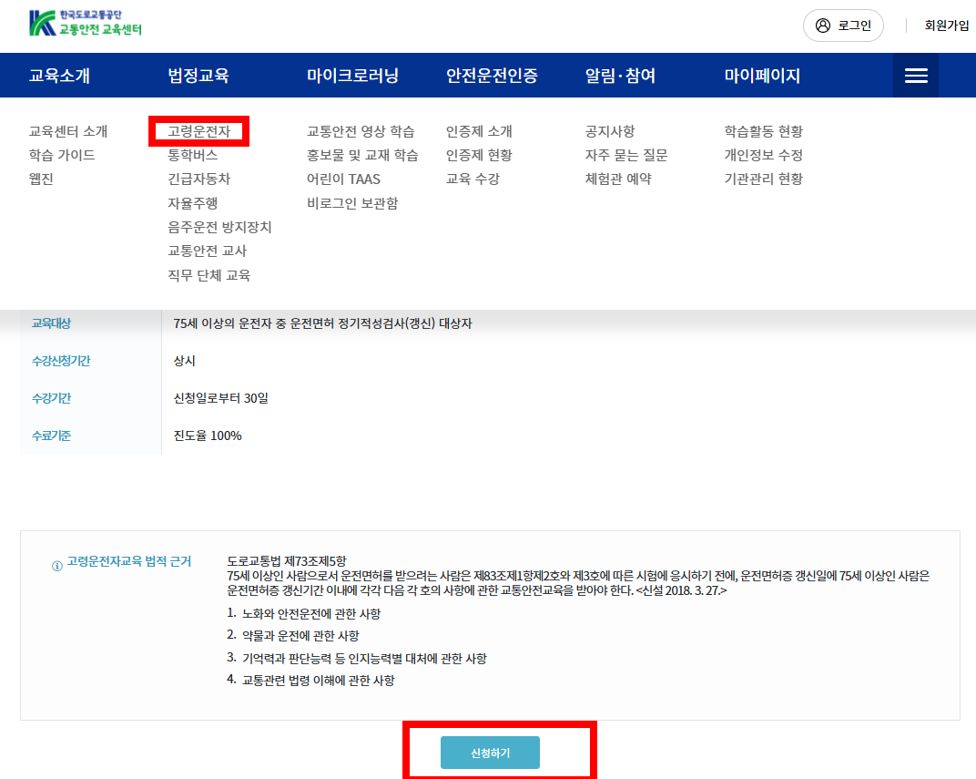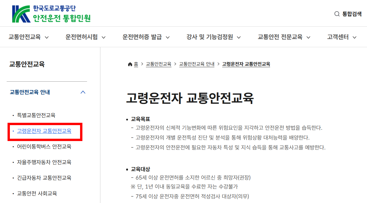 고령운전자 교통안전교육 온라인 신청방법