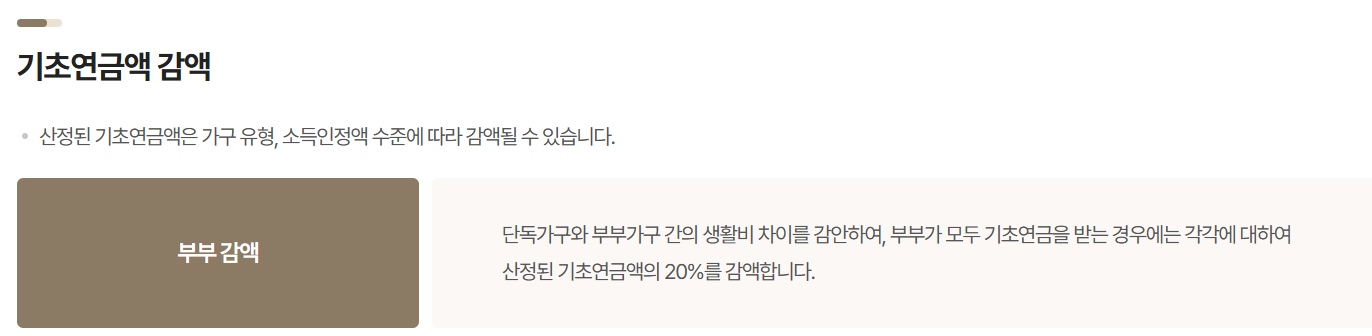 부부가 동시에 수급 자격을 충족하면 무조건 감액이 적용됩니다. 임의로 단독 수급만 선택할 수 없습니다. - 모의계산과 실제 지급액 차이 가능
