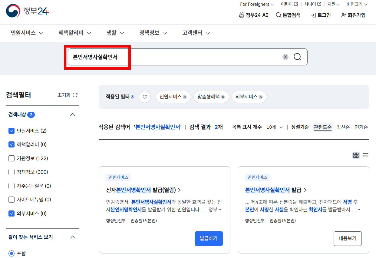 전자본인서명확인서 인터넷 발급 방법