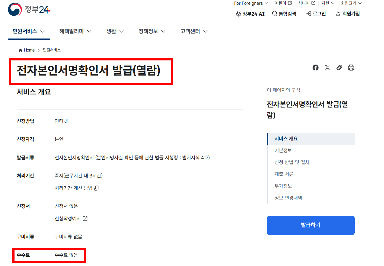전자본인서명확인서는 별도의 수수료 없이 항상 무료로 이용 가능합니다.