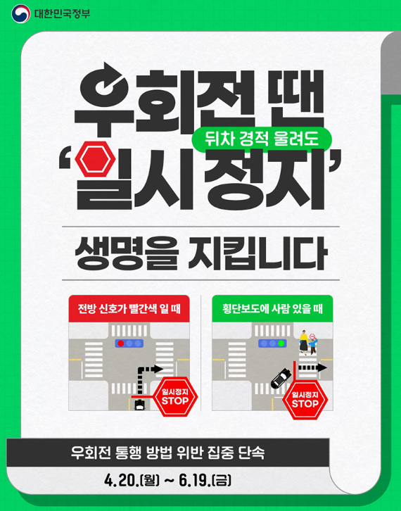 현재 우회전 일시정지 집중단속은 정해진 기간 동안 더욱 강력하게 시행되고 있습니다.