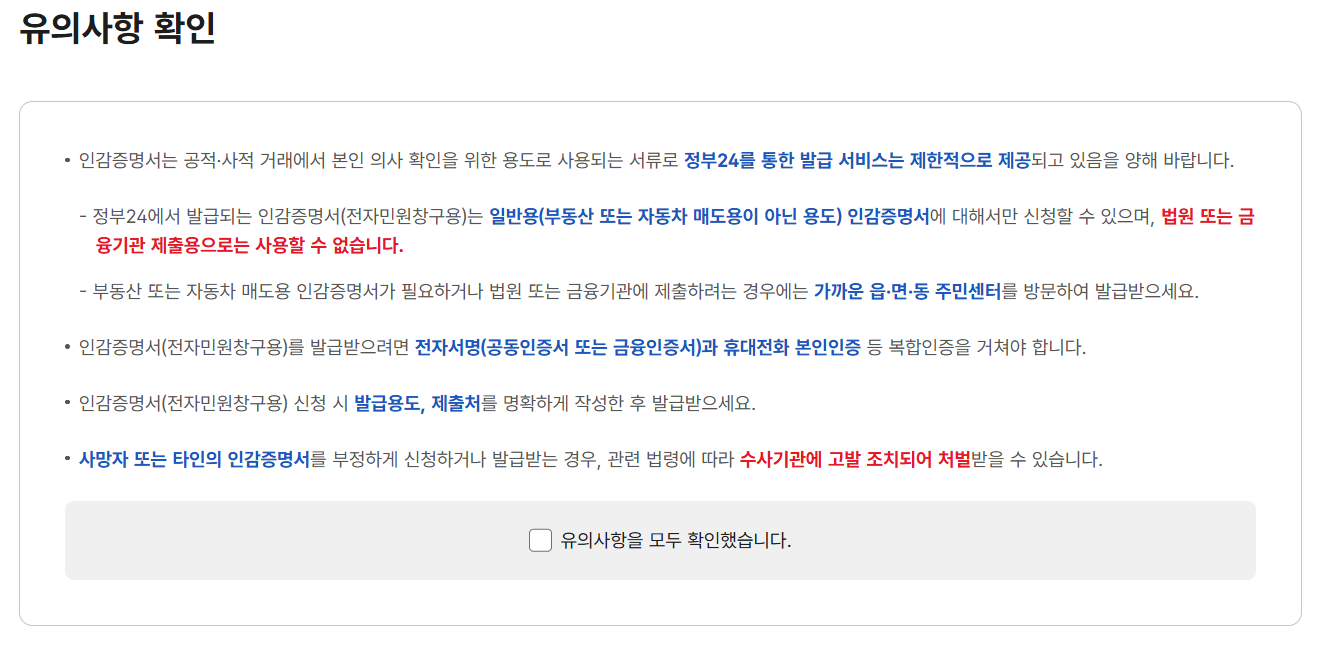인감증명서 발급 주의사항