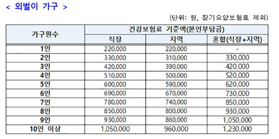 - 1인가구, 맞벌이, 외벌이 여부에 따라 기준 다름