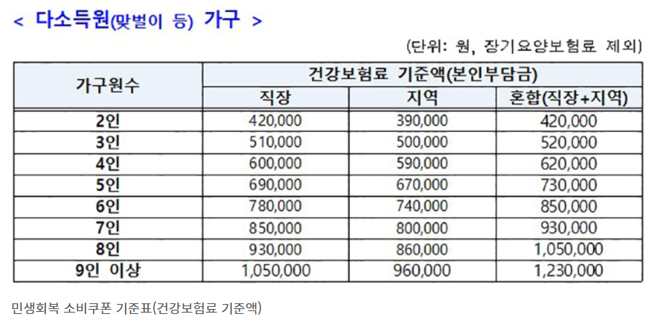 소득 하위 90%의 기준이 궁금하다면 건강보험료 기준선인 '민생회복 소비쿠폰 기준표'를 확인하시면 됩니다.